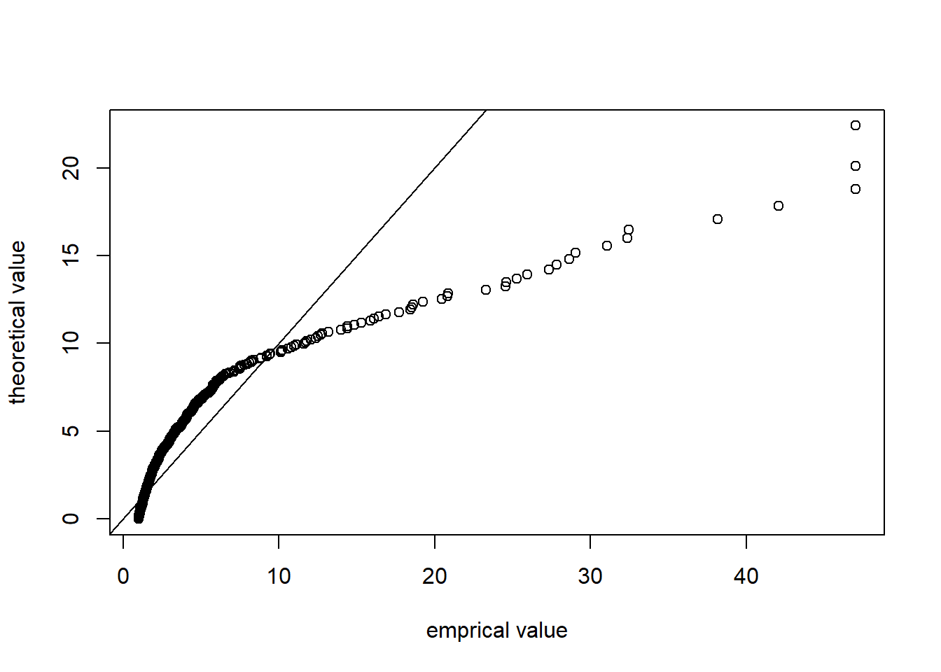 plot(x, y, xlab = "emprical value", ylab = "theoretical value")