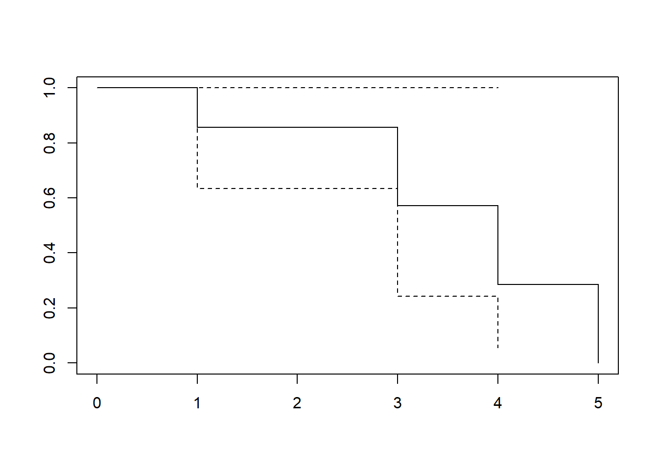 summary(sample.sf)Call: survfit(formula = Surv(t, d) ~ 1)