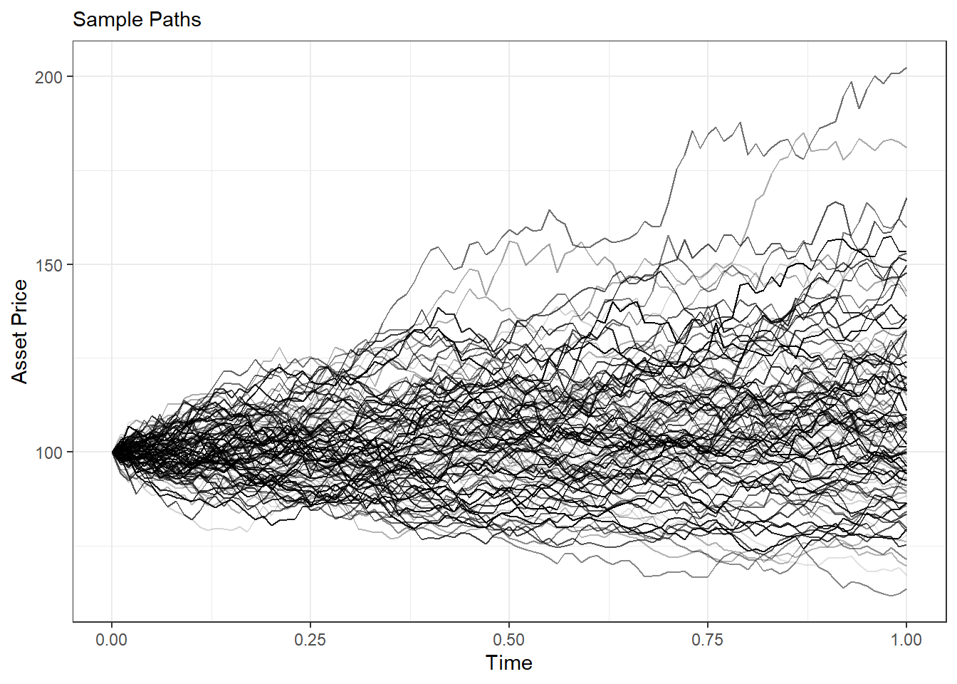 log_paths <- cbind (rep (0 , M), t (apply (increments, 1 , cumsum)))