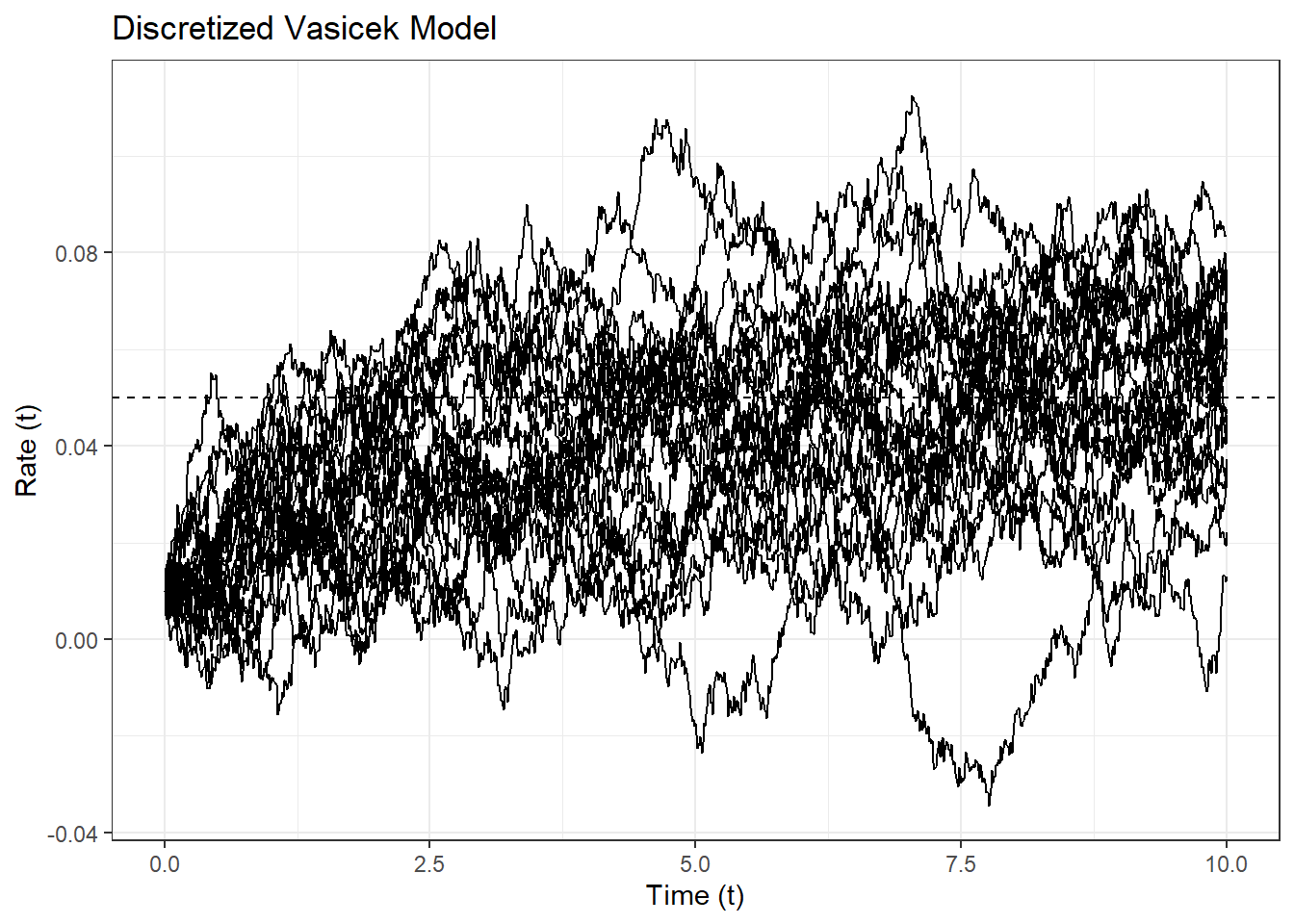 r_{t+\Delta t} = r_t + \kappa\;(\theta - r_t)\;\Delta t + \sigma\;\sqrt{\Delta t}\;\epsilon_t