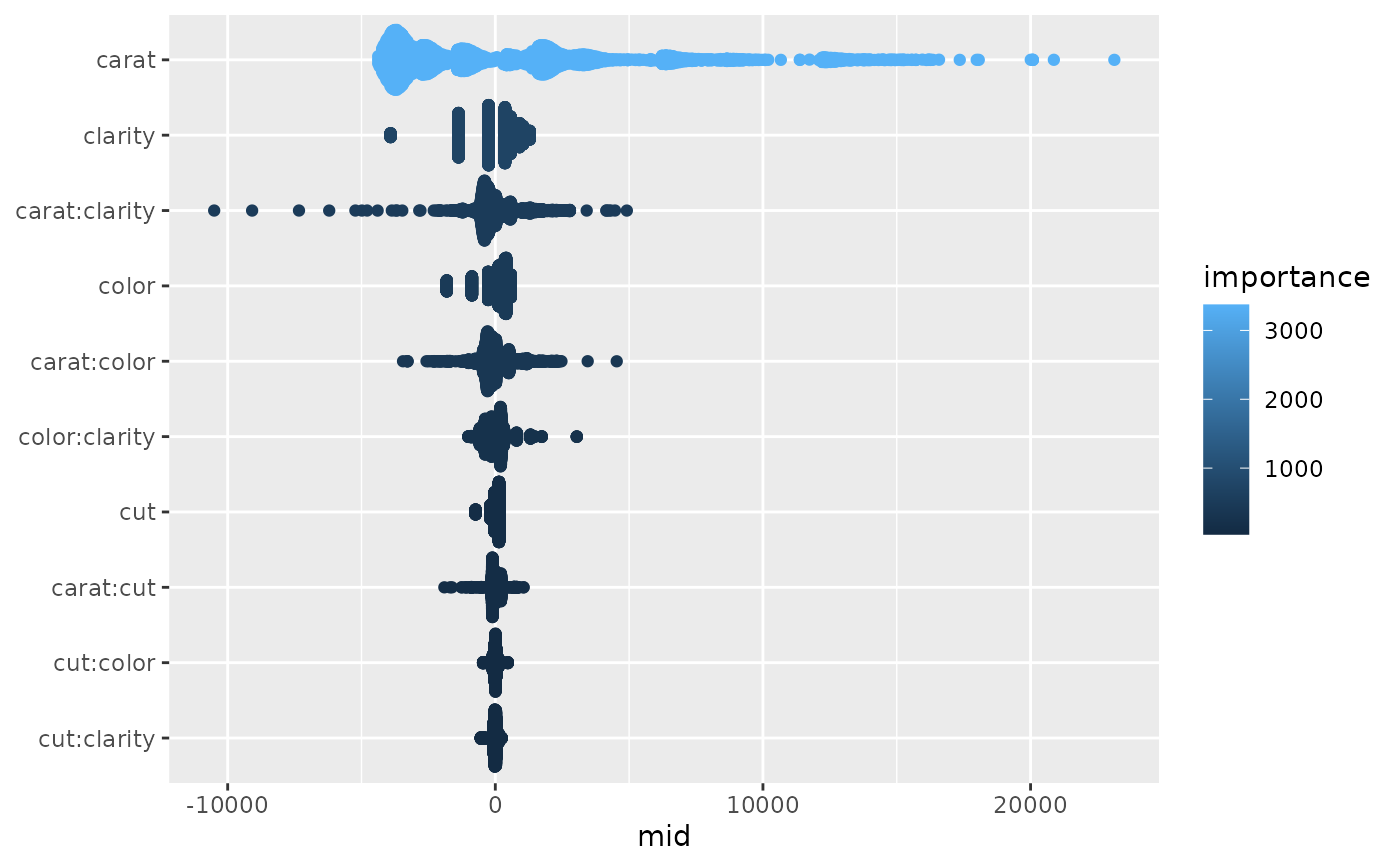 mid <- midr::interpret(price ~ (carat + cut + color + clarity)^2, diamonds[idx, ])